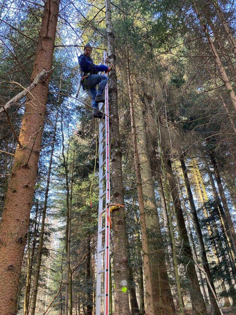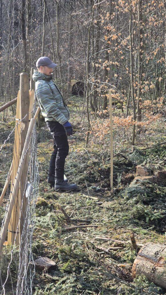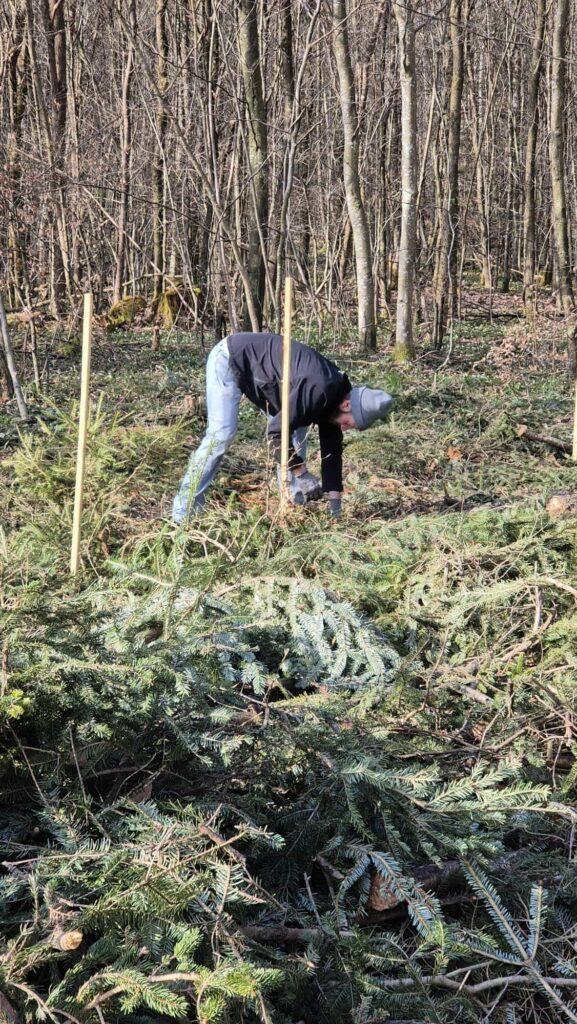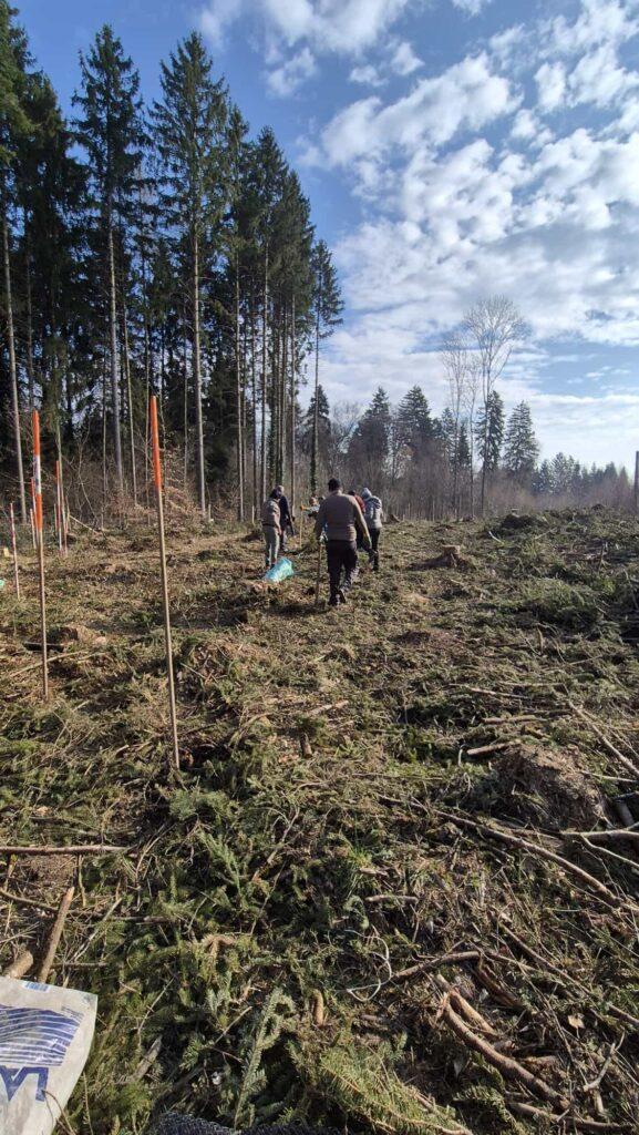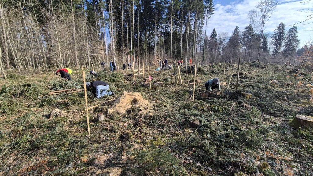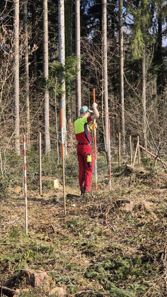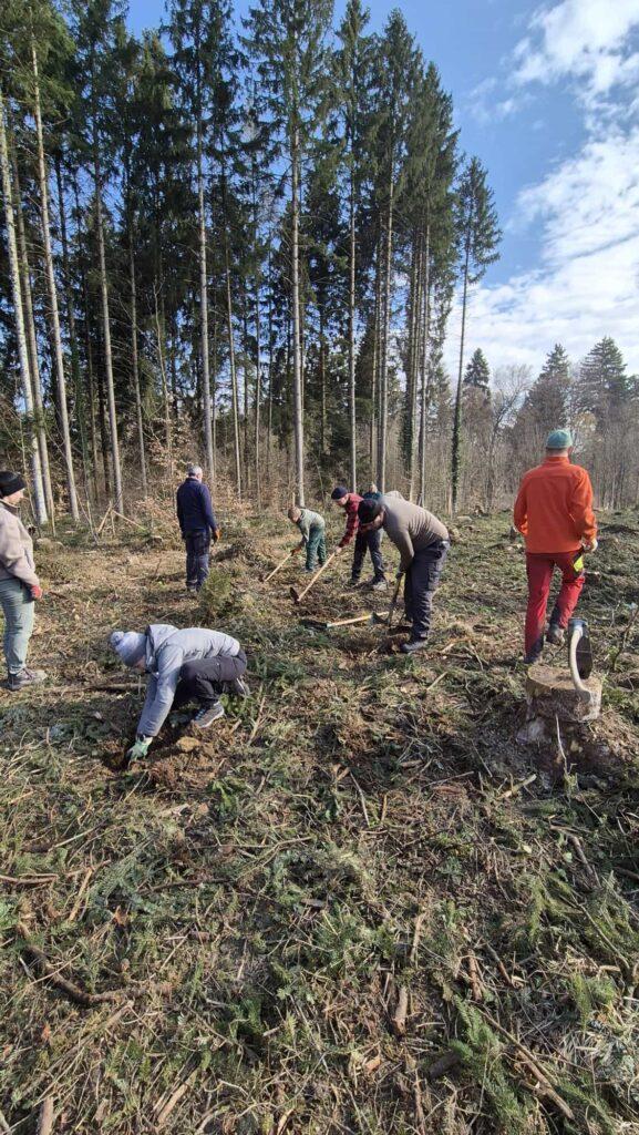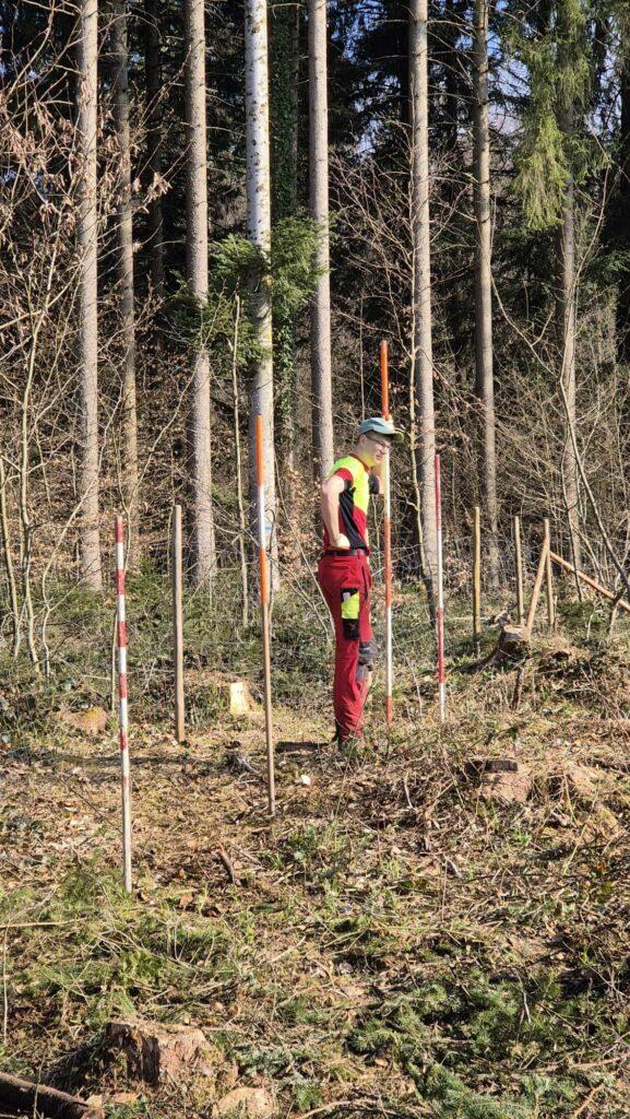 Gepflanzt wurden Stieleichen, Douglasien, Edelkastanien und Schwarznuss. Gleichzeitig wurden verschiedene Stangenhölzer in unterschiedlichen Höhen gewertastet – insbesondere Eichen, Kirschen, Fichten, Lärchen und Douglasien.